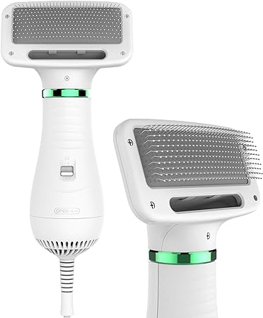 Con su gran diseño, el mango ergonómico hace que el secador sea muy fácil de sostener. Puedes secar sin esfuerzo a tu mascota mientras le das un cepillado, el ligero ángulo de las cerdas del cepillo están diseñadas para no rayar la piel. Fácil de usar y fácil de llevar a cualquier parte.