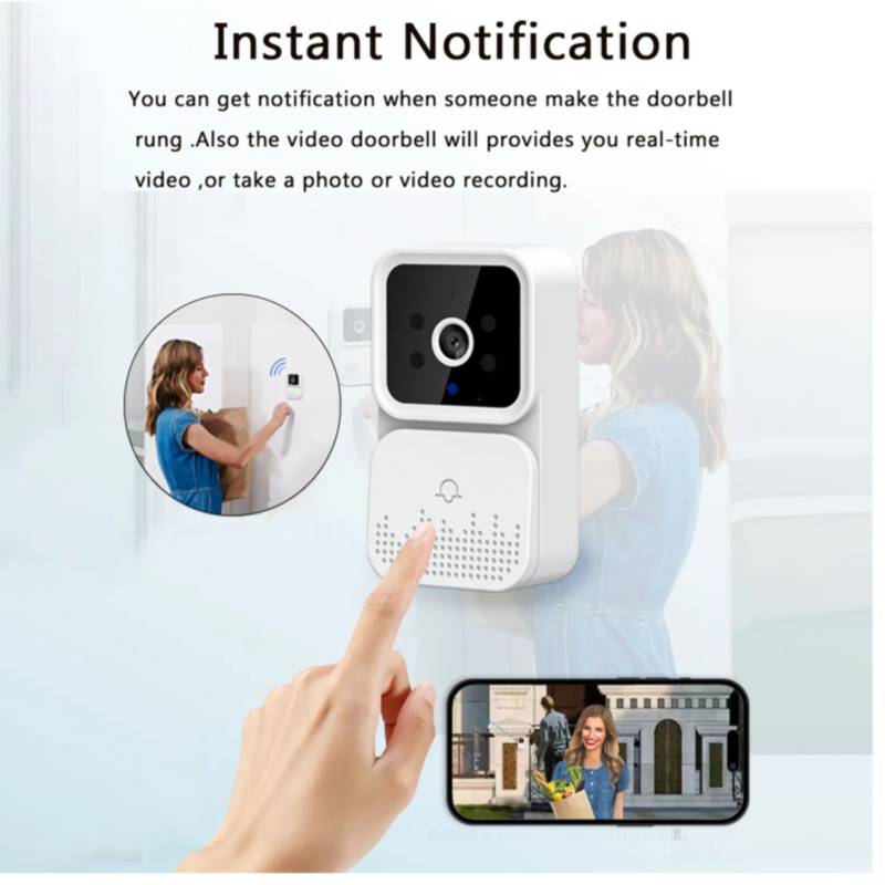 ¡Mantén tu hogar seguro con el Timbre Inalámbrico con Cámara HD para Exteriores! Este timbre de puerta de seguridad cuenta con visión nocturna, intercomunicador de vídeo, cambio de voz, monitor de casa y teléfono de puerta, para que siempre sepas quién está llamando a tu puerta.